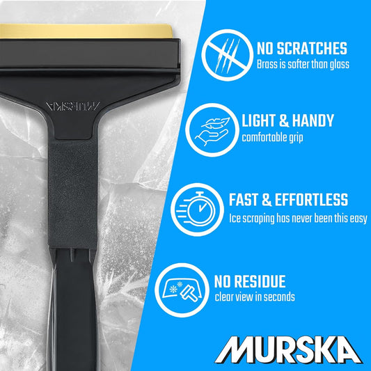 Car Brass Ice Scraper Long Handle Ice Scraper Brass Blade 14,5 Inch Ice Scraper for Car Snow Scraper Ice Scrapers for Car Windshield Original Murska from Europe (L&P A055 Black Gray)